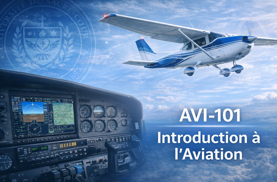 Le cours introduit également les étudiants au laboratoire de simulation de vol de l’Université du Sacré-Cœur, qui permet de comprendre les procédures cockpit et les opérations de base avant toute formation pratique.